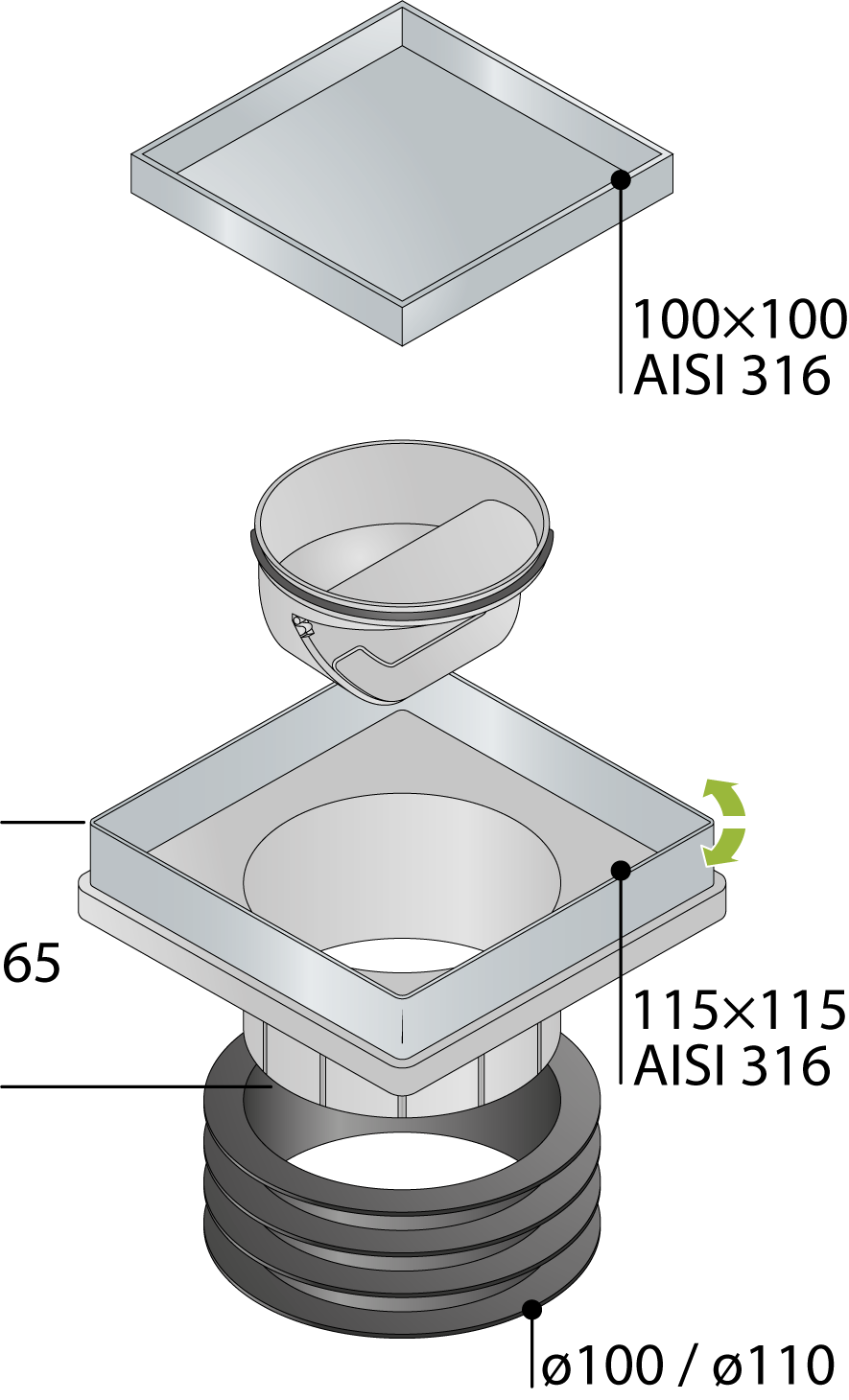 - AISI316 stainless steel frame and grid 2 in 1 system (tileable or satin)